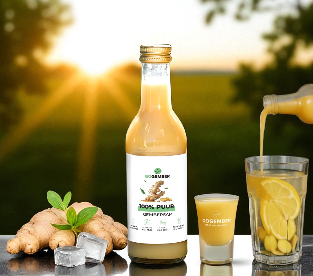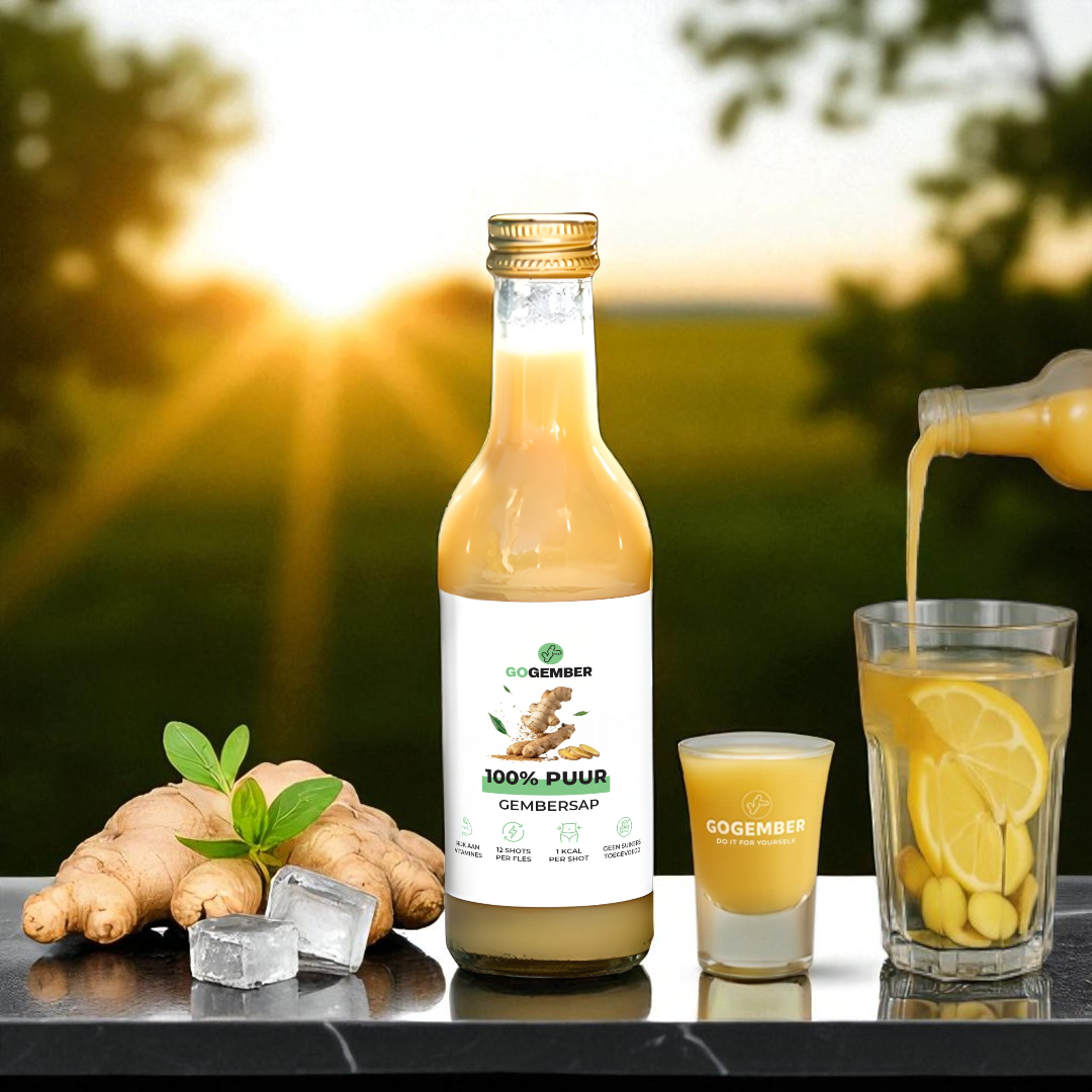 Per saldo ben je dus duurder uit, heb je minder voedingswaarde en een voorraad die je nauwelijks kunt bewaren. Bij ons krijg je puur, koudgeperst gembersap, professioneel gebotteld en langer houdbaar. Er is geen enkel ander bedrijf dat het zo vers en zorgvuldig doet als wij.