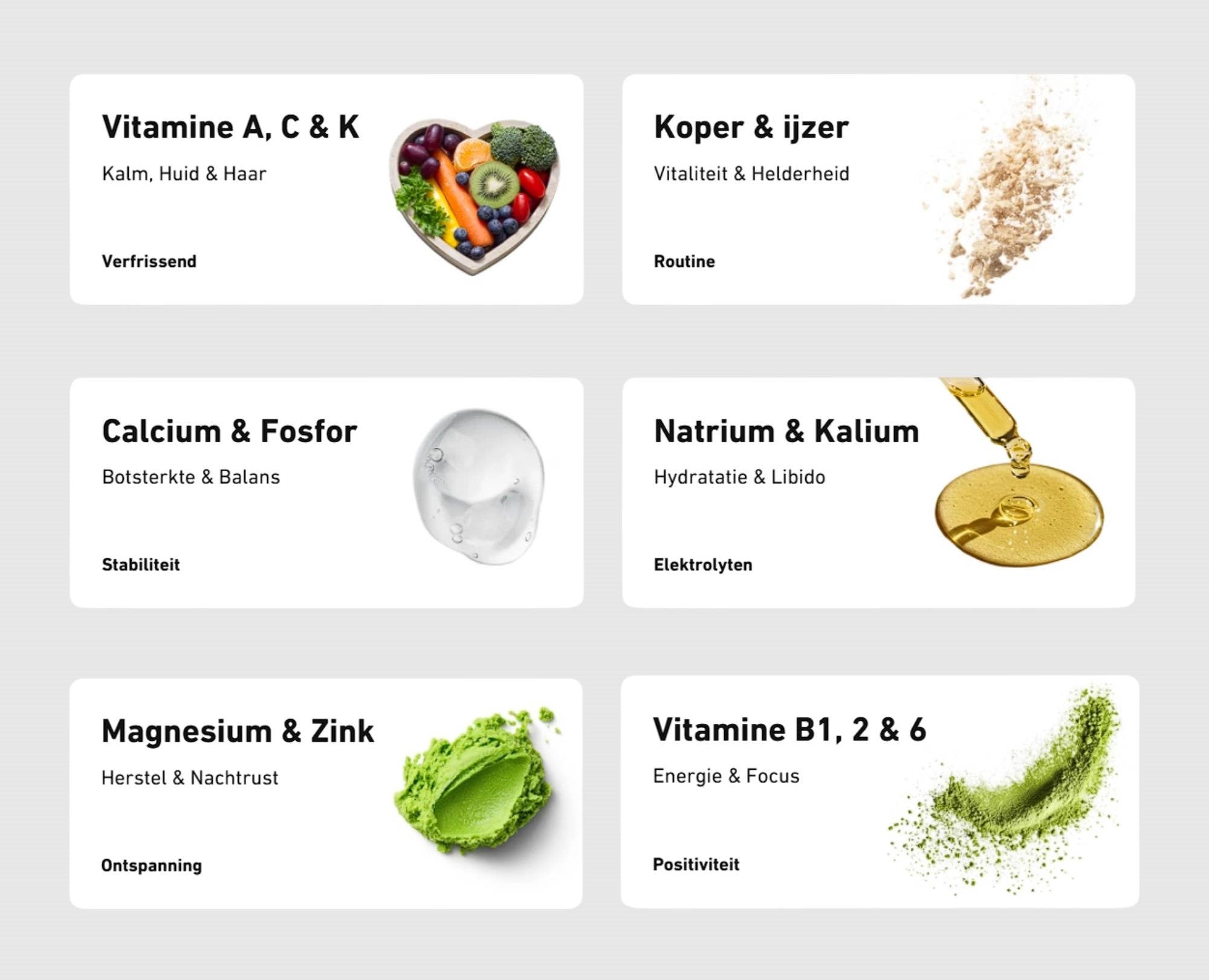 Het zit vol vitamines, mineralen & antioxidanten. Rechtstreeks uit de natuur, zonder pillen of poeders. Je lichaam herkent deze voedingsstoffen direct, waardoor ze écht hun werk doen. Precies zoals de natuur het bedoeld heeft.