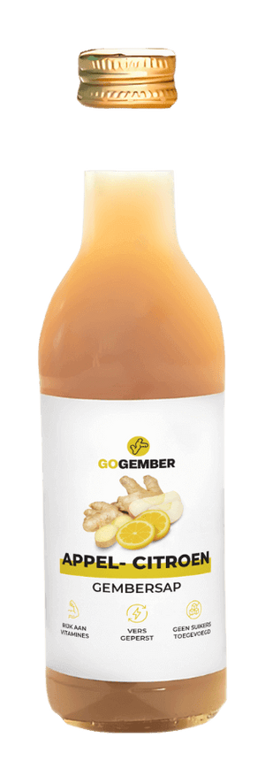 Per saldo ben je dus duurder uit, heb je minder voedingswaarde en een voorraad die je nauwelijks kunt bewaren. Bij ons krijg je puur, koudgeperst gembersap, professioneel gebotteld en langer houdbaar. Er is geen enkel ander bedrijf dat het zo vers en zorgvuldig doet als wij.