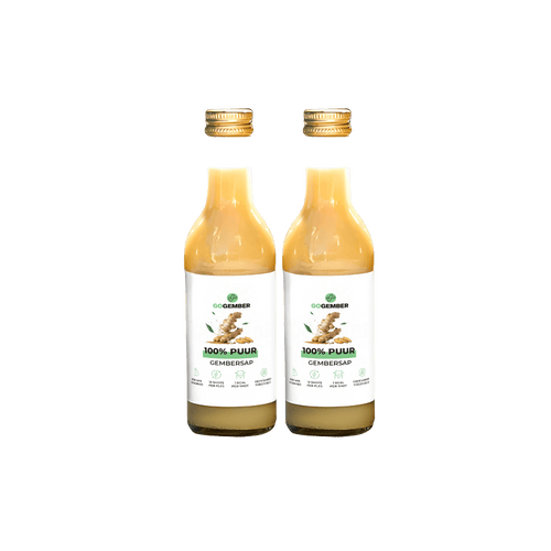 Per saldo ben je dus duurder uit, heb je minder voedingswaarde en een voorraad die je nauwelijks kunt bewaren. Bij ons krijg je puur, koudgeperst gembersap, professioneel gebotteld en langer houdbaar. Er is geen enkel ander bedrijf dat het zo vers en zorgvuldig doet als wij.